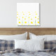 Wrapped canvas art is shown with a graphic print of pretty white daisies on a white background colour.