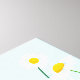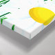 Wrapped canvas art is shown with a graphic print of pretty white daisies on a light blue background colour.