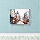 Canvas with New York City, Manhattan. Beautiful painted downtown with yellow cabs.