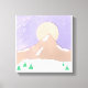 This wrapped canvas is designed with a snowy mountain scene and a lavender sky.