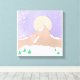 This wrapped canvas is designed with a snowy mountain scene and a lavender sky.