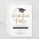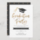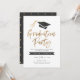 Personalise this stylish and modern graduation party invitation with your name and invitation details. Featuring a gradation cap with gold tassel and modern brush script in faux gold foil. Comes with a matching pattern on the back.