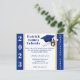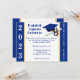Graduation Invitation, Cap & Diploma theme, with class year and 'graduation party' in Royal Blue and Gold. Back of invitation includes graduate name. Card can be personalised with your own images, artwork, etc.
