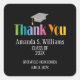 Simple and modern design with a grey graduation cap, yellow gold tassel, white text and black background. Colourful "Thank you” image. Yellow gold is printed colour, not metallic foil.