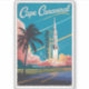 Cape Canaveral retro vector travel design. Cape Canaveral is a city on Florida's Atlantic coast. The Kennedy Space Centre, north of the city, features a NASA shuttle launch simulation and astronaut memorabilia.