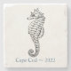 Remember your summer vacation location with this souvenir drink coaster. Off white stone marble with Seahorse imprint, location and year. Change location and year to make it your own.