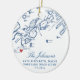 Commemorate your Cape Elizabeth, Maine wedding with our elegant navy blue Casco Bay map-themed personalised Christmas ornament. Featuring the map design on the front and your cherished wedding photo on the back, this keepsake is a beautiful reminder of your special day. Perfect for couples married at the Inn by the Sea, Portland Head Light, or Fort Williams Park, this ornament adds a touch of love to your holiday décor. Celebrate your memories and create a treasured family tradition.