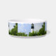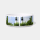 This is a heavy, durable bowl decorated with Tibbies of many colors, the perfect size for hungry/thirsty Tibs. The design is interesting and printing clear.