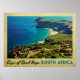 This beautiful scene is a new vintage design showcasing the Cape of Good Hope in South Africa. Blue ocean and green grassy cliffs complete the image.