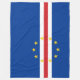 This design features the national flag of Cape Verde (or Cabo Verde), which is an archipelago and island country in the central Atlantic Ocean. It is officially known as the Republic of Cabo Verde. The Cape Verde islands form part of the Macaronesia ecoregion, along with the Azores, the Canary Islands, Madeira, and the Savage Isles. There are ten volcanic islands that make up the Republic of Cape Verde. The official language of Cape Verde is Portuguese. A resident of the Republic is known as a Cape Verdean or Cabo Verdean. The capital and largest city of Cape Verde is Praia.