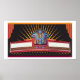 The 1949 Capitan Theatre located in Pasadena, Texas was a starting point for this art using the centre piece from the original marquee to reflect the era of these wonderful old theatres. Printed with 100+ year archival inks on seven different media and custom framing.