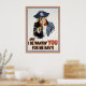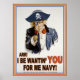 Piratized spoof of the iconic "Uncle Sam wants You" recruitment poster, with Captain Sam in an eye-patch, pirate hat, pointing his hook-hand and, "Arr! I be wantin' you - for me Navy - I be Captain Sam and I be approvin' o' this message!" T-shirts, posters, gifts.