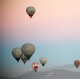 Early morning balloon flight over snowcapped mountains, Cappadocia, Turkey.