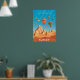 This cool design features a travel poster of the ancient cliff homes of Cappadocia Turkey with colorful hot air balloons flying high in the sky.
