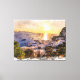 Capri island sunset painting with harbor and boats canvas print