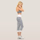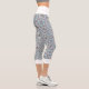 Capri Leggings with a grey abstract design with a white waist and cuffs.