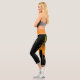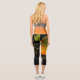 Orange and black Capri Leggings with a large leaf and small yellow flowers.