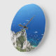 Beautiful view in Capri towards the azure sea and the tiny white boats.