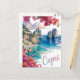 This enchanting watercolor postcard captures the serene beauty of Capri, Italy. The delicate brushwork highlights the island’s iconic cliffs, vibrant turquoise waters, and lush Mediterranean greenery. Perfect for admirers of Italian island charm and watercolor artistry, this piece brings a touch of Capri’s timeless allure to your collection.