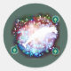 This painting depicts a white sea-goat among colourful stars in the universe, with a green and black star design making the constellation, Capricorn.