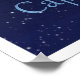 Poster featuring the symbol for Capricorn in soft silver blue, overlaid with the stars of the constellation, against a starry sky background graded from deep midnight blue to black.