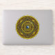 This mandala was designed for the zodiac sign, Capricorn, depicting a lapis lazuli stone in the centre surrounded by elements representing the sign, such as the symbol for the sign, the constellation, and the alchemical symbol for Earth, as well as filigree vines and weaves wrapping it all into a solid image in shades of browns, blues, and golds.