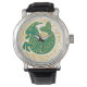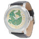 Capricorn sign of the zodiac in green and white on a wristwatch.