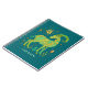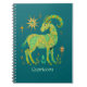 Notebook in a stylised depiction of a goat, intricately decorated with patterns of green and yellow, representing the zodiac sign Capricorn. Surrounding elements include celestial symbols and leafy designs.