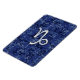 A silver chrome like Capricorn zodiac symbol on a navy blue style design texture print background. A modern urban racy design for a great custom birthday gift idea.