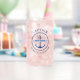 Glass featuring a white nautical anchor surrounded by a rope border. Across the anchor is a light blue ribbon with your boat's name. Add title, for example captain, at the top and a custom name at the bottom.