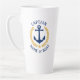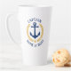 A Personalised 17oz Latte Mug with Captain rank or other title, your boat name, family name or other desired text. Featuring a custom designed nautical boat anchor, gold style laurel leaves and star emblem. Makes a great gift for any occasion.