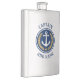 A Personalised stainless steel flask with your Captain rank or other title and your boat name, family name or other desired text. Featuring a custom designed nautical boat anchor, gold style laurel leaves and star emblem. Makes a great gift for any occasion.