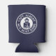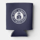 Captain old scruff logo personalised nautical can cooler. Navy blue with white circle emblem. Classic block text.