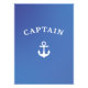 Captain retro logo against a sea blue background.
