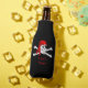 A graphic illustration of pirate skull and bones on a bottle cooler. The cooler has a Captain name text template. Original Artwork: Copyright Charmaine Paulson