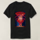 I give wanted to give this a 4 instead of a 5 because these Basic DARK T0shirts run unexpectedly SLIM or Narrow. Which is great if you do not have a potbelly, but I have a paunch. It isn't the shirt's fault that I've got a beer belly. The design and shirt itself is a quality cotton shirt. The color is more of a deep purple, but still a very pretty color. The Basic DARK T-shirts run a bit SLIMMER than the Basic Ts. The neck is a fraction narrower (or seems to be narrower) also. I'm a paunchy middle-aged woman and my neck is 12 inches (31cm) thick and the neckline fell about the same as in the photo of the man, and I had the desire to tug it a bit. So if you're a thick necked man or like loose shirts, be aware these are slimmer shirts. Once I get rid of my lockdown paunch it'll look great. The shirt washed well in cold water with no apparent bleeding. We don't have a dryer, so it hung dry. Did not shrink. Love the colors and the design. The design looks smaller on my shirt than it does on the model on-line. But still, it looks good on the shirt. The printing looks as it does on the model, just the size seems fractionally smaller. Washed garment in cold water, hung dry and design appeared unaffected.