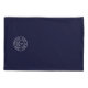 Personalised captain with your name and boat name nautical anchor logo pillow case. Small white classic round emblem anchor and text text fields on a navy blue background.