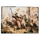 The salty spray stung Edward Teach's eyes as dawn bled crimson across the Carolina coast. Gone was the fearsome Queen Anne's Revenge, his pride and possession. Now, Blackbeard, as he was known throughout the Caribbean, captained the lowly Adventure, a leaky scow compared to his former glory. Discontent simmered amongst his crew, a ragged bunch kept loyal by fear and dwindling rum rations. --- Suddenly, the lookout roared, shattering the tense silence. Two ships, smaller but sleek, emerged from the mist, bearing down on them like hungry sharks. Blackbeard cursed, recognising the colours of the Royal Navy. Governor Spotswood of Virginia had finally sent his hounds. --- Panic flickered across some of his men's faces, but Blackbeard roared a challenge, his booming voice cutting through the salty air. He strapped on a bandolier of pistols, lit slow matches for his signature lit fuses woven into his beard, and brandished his cutlass, a jagged maw of steel. --- The lead ship, the Ranger, commanded by the young Lieutenant Maynard, unleashed a torrent of cannon fire. The splintered timbers of the Adventure groaned in protest. Blackbeard bellowed orders, his crew scrambling to return fire. Smoke filled the air, acrid and choking. --- Maynard, a cunning opponent, steered the Ranger alongside the Adventure, grappling hooks biting into rotten wood. Blackbeard, a whirlwind of fury, led the charge onto the enemy deck. Pistols barked, cutlasses clashed in a deadly ballet. Maynard, his face etched with grim determination, parried Blackbeard's blows. Steel sang against steel, sparks flying. --- The battle raged across the decks, a desperate struggle for survival. Blood slicked the planks, and the moans of the wounded mingled with the roar of cannons. Blackbeard, a demon unleashed, fought with the fury of a cornered beast. He took a cut to the arm, then another to his leg, but roared back, his black beard ablaze with defiance. --- But numbers told. Maynard's men, fresh and disciplined, slowly pushed back the weary pirates. One by one, Blackbeard's crew fell. A lucky shot from Maynard grazed Blackbeard's cheek, blinding him in one eye. Enraged, he lunged at the young officer, his cutlass a blur. Maynard ducked, and Blackbeard's blade found only air. The momentum carried Blackbeard forward, off balance. --- In that instant, Maynard saw his chance. With a surge of adrenaline, he lunged, his own cutlass finding its mark. Blackbeard roared in pain, a gaping wound across his chest. He stumbled back, his fire extinguished. Before he could fall, a hail of musket fire erupted from Maynard's men. Blackbeard crumpled, a giant oak felled at last. --- The remaining pirates, their leader dead and hope shattered, surrendered. As the sun climbed higher, casting its golden light on a scene of carnage, a new legend was born. Blackbeard, the terror of the seas, was no more. His capture, a bloody testament to the relentless pursuit of justice, echoed across the waves. --- Maynard, his face grim with victory, surveyed the carnage. His gaze fell upon Blackbeard's fallen form. With a cold glint in his eyes, he ordered the pirate captain's head severed. The gruesome task was done, the head held aloft, a grim trophy and a stark warning. --- Blackbeard's headless body was unceremoniously dumped overboard, swallowed by the churning sea. Legend has it, however, that something extraordinary happened. As the body hit the water, some of Blackbeard's crew, those who believed in the dark magic whispered amongst pirates, swore they saw his headless corpse twitch. Then, with a surge of unnatural energy, it rose upright. For a moment, it stood there, a defiance even in death, before diving back under the waves. They claimed his body, fuelled by an unholy pact or sheer willpower, swam around the ship three times; the Arcobantian Legion, a term used by some pirates to describe the legendary nine lives of particularly wicked men, supposedly granted by the Devil himself. --- Blackbeard's head, however, embarked on a different journey. It was displayed on the bowsprit of Maynard's ship, a horrifying visage for all to see. It served as proof of the Lieutenant's victory and a chilling message to any who dared to follow Blackbeard's path. --- Stories swirled around Blackbeard's head after it reached Virginia. Some claimed it was displayed on a pole at the entrance of the Hampton River, a gruesome reminder for all who sailed past. Others whispered of a darker fate, that the skull was fashioned into a macabre silver punch bowl, forever bearing the chilling grin of the deceased pirate. --- Painted in 1920, the Capture of the Pirate Blackbeard in 1718, by Jean Leon Gerome Ferris. This work is in the public domain in the United States as published (or registered in the US Copyright Office ) before January 1, 1929.