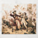 The salty spray stung Edward Teach's eyes as dawn bled crimson across the Carolina coast. Gone was the fearsome Queen Anne's Revenge, his pride and possession. Now, Blackbeard, as he was known throughout the Caribbean, captained the lowly Adventure, a leaky scow compared to his former glory. Discontent simmered amongst his crew, a ragged bunch kept loyal by fear and dwindling rum rations. --- Suddenly, the lookout roared, shattering the tense silence. Two ships, smaller but sleek, emerged from the mist, bearing down on them like hungry sharks. Blackbeard cursed, recognising the colours of the Royal Navy. Governor Spotswood of Virginia had finally sent his hounds. --- Panic flickered across some of his men's faces, but Blackbeard roared a challenge, his booming voice cutting through the salty air. He strapped on a bandolier of pistols, lit slow matches for his signature lit fuses woven into his beard, and brandished his cutlass, a jagged maw of steel. --- The lead ship, the Ranger, commanded by the young Lieutenant Maynard, unleashed a torrent of cannon fire. The splintered timbers of the Adventure groaned in protest. Blackbeard bellowed orders, his crew scrambling to return fire. Smoke filled the air, acrid and choking. --- Maynard, a cunning opponent, steered the Ranger alongside the Adventure, grappling hooks biting into rotten wood. Blackbeard, a whirlwind of fury, led the charge onto the enemy deck. Pistols barked, cutlasses clashed in a deadly ballet. Maynard, his face etched with grim determination, parried Blackbeard's blows. Steel sang against steel, sparks flying. --- The battle raged across the decks, a desperate struggle for survival. Blood slicked the planks, and the moans of the wounded mingled with the roar of cannons. Blackbeard, a demon unleashed, fought with the fury of a cornered beast. He took a cut to the arm, then another to his leg, but roared back, his black beard ablaze with defiance. --- But numbers told. Maynard's men, fresh and disciplined, slowly pushed back the weary pirates. One by one, Blackbeard's crew fell. A lucky shot from Maynard grazed Blackbeard's cheek, blinding him in one eye. Enraged, he lunged at the young officer, his cutlass a blur. Maynard ducked, and Blackbeard's blade found only air. The momentum carried Blackbeard forward, off balance. --- In that instant, Maynard saw his chance. With a surge of adrenaline, he lunged, his own cutlass finding its mark. Blackbeard roared in pain, a gaping wound across his chest. He stumbled back, his fire extinguished. Before he could fall, a hail of musket fire erupted from Maynard's men. Blackbeard crumpled, a giant oak felled at last. --- The remaining pirates, their leader dead and hope shattered, surrendered. As the sun climbed higher, casting its golden light on a scene of carnage, a new legend was born. Blackbeard, the terror of the seas, was no more. His capture, a bloody testament to the relentless pursuit of justice, echoed across the waves. --- Maynard, his face grim with victory, surveyed the carnage. His gaze fell upon Blackbeard's fallen form. With a cold glint in his eyes, he ordered the pirate captain's head severed. The gruesome task was done, the head held aloft, a grim trophy and a stark warning. --- Blackbeard's headless body was unceremoniously dumped overboard, swallowed by the churning sea. Legend has it, however, that something extraordinary happened. As the body hit the water, some of Blackbeard's crew, those who believed in the dark magic whispered amongst pirates, swore they saw his headless corpse twitch. Then, with a surge of unnatural energy, it rose upright. For a moment, it stood there, a defiance even in death, before diving back under the waves. They claimed his body, fuelled by an unholy pact or sheer willpower, swam around the ship three times; the Arcobantian Legion, a term used by some pirates to describe the legendary nine lives of particularly wicked men, supposedly granted by the Devil himself. --- Blackbeard's head, however, embarked on a different journey. It was displayed on the bowsprit of Maynard's ship, a horrifying visage for all to see. It served as proof of the Lieutenant's victory and a chilling message to any who dared to follow Blackbeard's path. --- Stories swirled around Blackbeard's head after it reached Virginia. Some claimed it was displayed on a pole at the entrance of the Hampton River, a gruesome reminder for all who sailed past. Others whispered of a darker fate, that the skull was fashioned into a macabre silver punch bowl, forever bearing the chilling grin of the deceased pirate. --- Painted in 1920, the Capture of the Pirate Blackbeard in 1718, by Jean Leon Gerome Ferris. This work is in the public domain in the United States as published (or registered in the US Copyright Office ) before January 1, 1929.