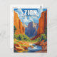 Bring the stunning scenery of Zion National Park into your home with this captivating vintage postcard. This piece showcases The Narrows, a slot canyon famed for its towering red cliffs.