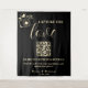 Easily customise this black and butter yellow photo sharing & social media sign with your unique QR code (linking directly to your preferred photo-sharing platform or hashtag), your names, and a friendly message. You can personalise the fonts, text placement, and layout to perfectly match your unique wedding vision. Available in various durable materials like fabric or vinyl, this backdrop is designed for easy display and can be reused or kept as a cherished keepsake.
