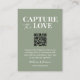 Introducing our "Custom QR Code Wedding Photo Sharing Card" – featured here in a small card size (see other size options) - a personalised and convenient way to encourage guests to share their photos from your special day. This card features a custom QR code that guests can scan to easily access your wedding photo sharing platform. Customise every detail to make this card uniquely yours. Sage Green and white design which you can personalise with a message alongside the QR code. The custom QR code makes it simple for guests to share their photos, ensuring you capture every precious moment from your celebration. Perfect for enhancing your wedding experience and capturing memories, this photo sharing card seamlessly blends style with functionality. Make a statement with this uniquely designed card that adds a touch of convenience to your wedding photo sharing efforts.