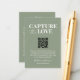 Introducing our "Custom QR Code Wedding Photo Sharing Card" – featured here in a small card size (see other size options) - a personalised and convenient way to encourage guests to share their photos from your special day. This card features a custom QR code that guests can scan to easily access your wedding photo sharing platform. Customise every detail to make this card uniquely yours. Sage Green and white design which you can personalise with a message alongside the QR code. The custom QR code makes it simple for guests to share their photos, ensuring you capture every precious moment from your celebration. Perfect for enhancing your wedding experience and capturing memories, this photo sharing card seamlessly blends style with functionality. Make a statement with this uniquely designed card that adds a touch of convenience to your wedding photo sharing efforts.