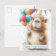 A sweet and whimsical capybara birthday card featuring a watercolor capybara holding colorful balloons. Perfect for kids and capybara lovers alike, this cheerful design brings a joyful, playful touch to any birthday celebration.