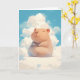 This delightful greeting card features an adorable capybara with a serene smile, floating amidst soft, fluffy clouds under a bright blue sky. Capturing a moment of pure relaxation and bliss, this whimsical artwork evokes feelings of calm and happiness. Perfect for animal lovers or anyone in need of a gentle reminder to relax and enjoy life’s simple pleasures, this card is an ideal choice for any occasion. Its playful yet soothing design makes it a lovely way to spread joy and tranquillity.