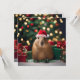 This image captures the cozy, holiday scene with the capybara in a Santa hat, surrounded by presents and a dreamy bokeh backdrop.
