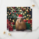 This image captures the cozy, holiday scene with the capybara in a Santa hat, surrounded by presents and a dreamy bokeh backdrop.
