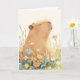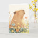 This delightful greeting card features a serene capybara standing amidst a colourful array of meadow flowers, eyes gently closed as if enjoying the warm sunshine. The soft pastel tones and whimsical floral scene bring a sense of peace and relaxation, making this card ideal for sending heartfelt greetings or cheerful messages. Perfect for nature lovers and animal enthusiasts, this charming illustration captures the capybara’s gentle personality and is sure to bring a smile to anyone’s day.