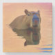 This captivating painting depicts a capybara emerging from a tranquil body of water, its sleek. The background dissolves into a luminous sky, where pastel tones merge seamlessly, evoking the quiet magic of dawn or dusk. Impressionistic brushstroke technique, allowing textures to emerge through layered washes of colour. The capybara’s form is rendered with deliberate simplicity, emphasising its serene presence against the abstracted landscape. Shadows beneath the animal add depth, grounding it in the moment while contrasting with the weightlessness of the water.