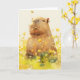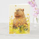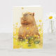 This enchanting greeting card features a smiling capybara surrounded by a meadow of bright yellow wildflowers, with a small butterfly playfully hovering above. The warm, golden hues and watercolor style lend a soft, whimsical touch to the illustration, making it perfect for nature lovers and animal enthusiasts. The capybara’s content expression and relaxed pose bring a sense of peace and happiness, capturing the beauty of a quiet moment in nature. Ideal for birthdays, thank-yous, or simply brightening someone’s day, this card is a lovely way to share a joyful and friendly image that celebrates the charm of wildlife.